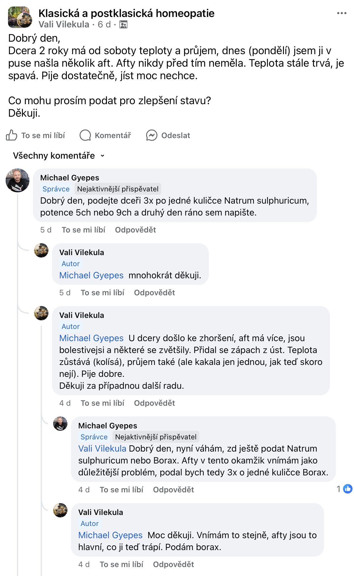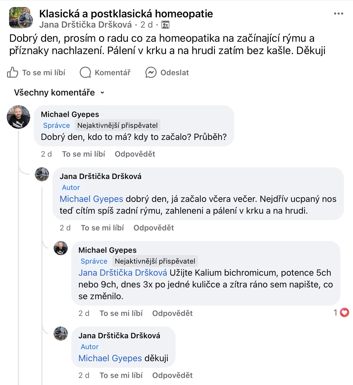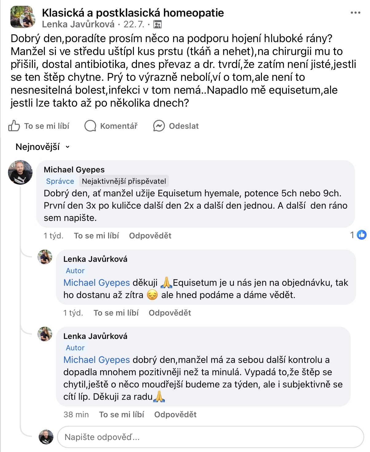 Recenze na Facebooku ve skupině Klasická a postklasická homeopatie.