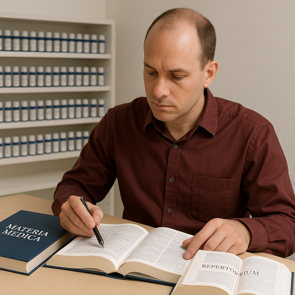 K analýze využívám repertorium (systematický přehled symptomů) a materia mediku (popisy jednotlivých homeopatických léků).