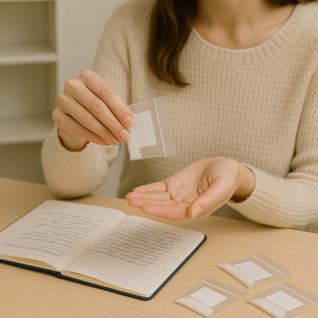 Homeopatika se užívají postupně, vždy jeden sáček po druhém, podle pokynů.