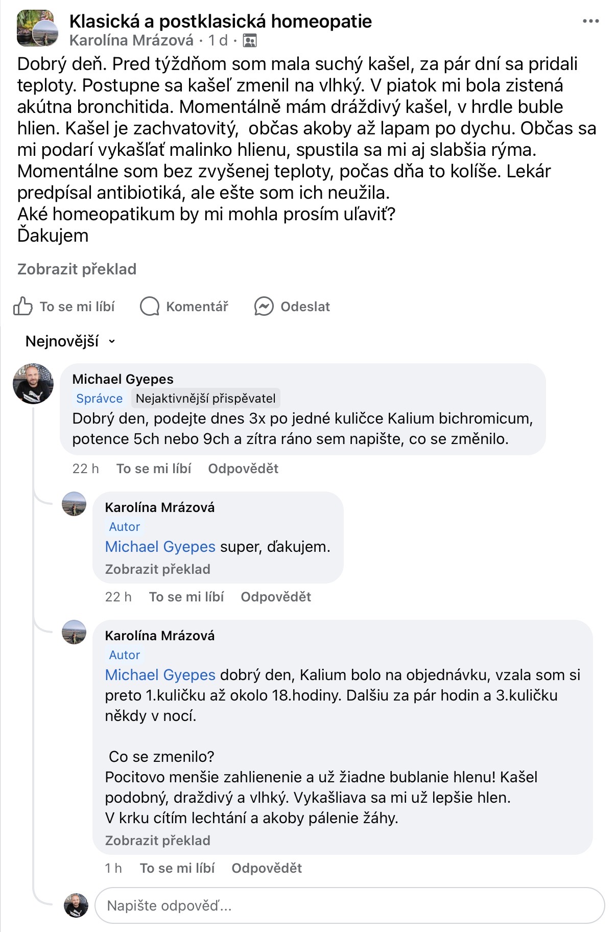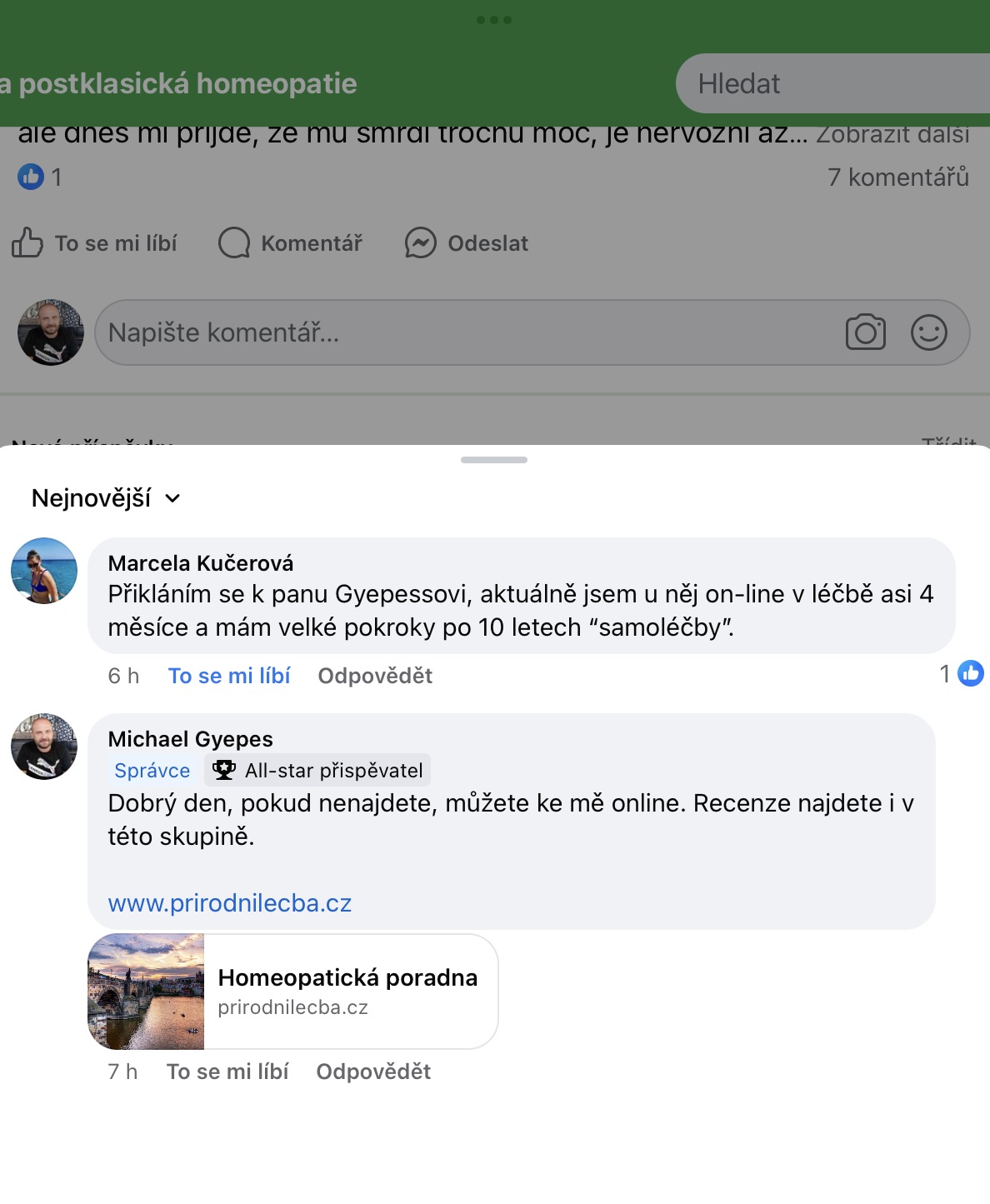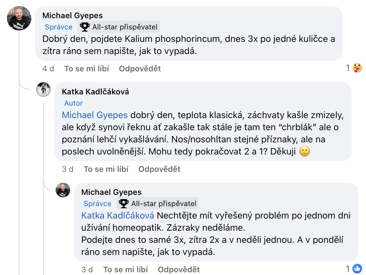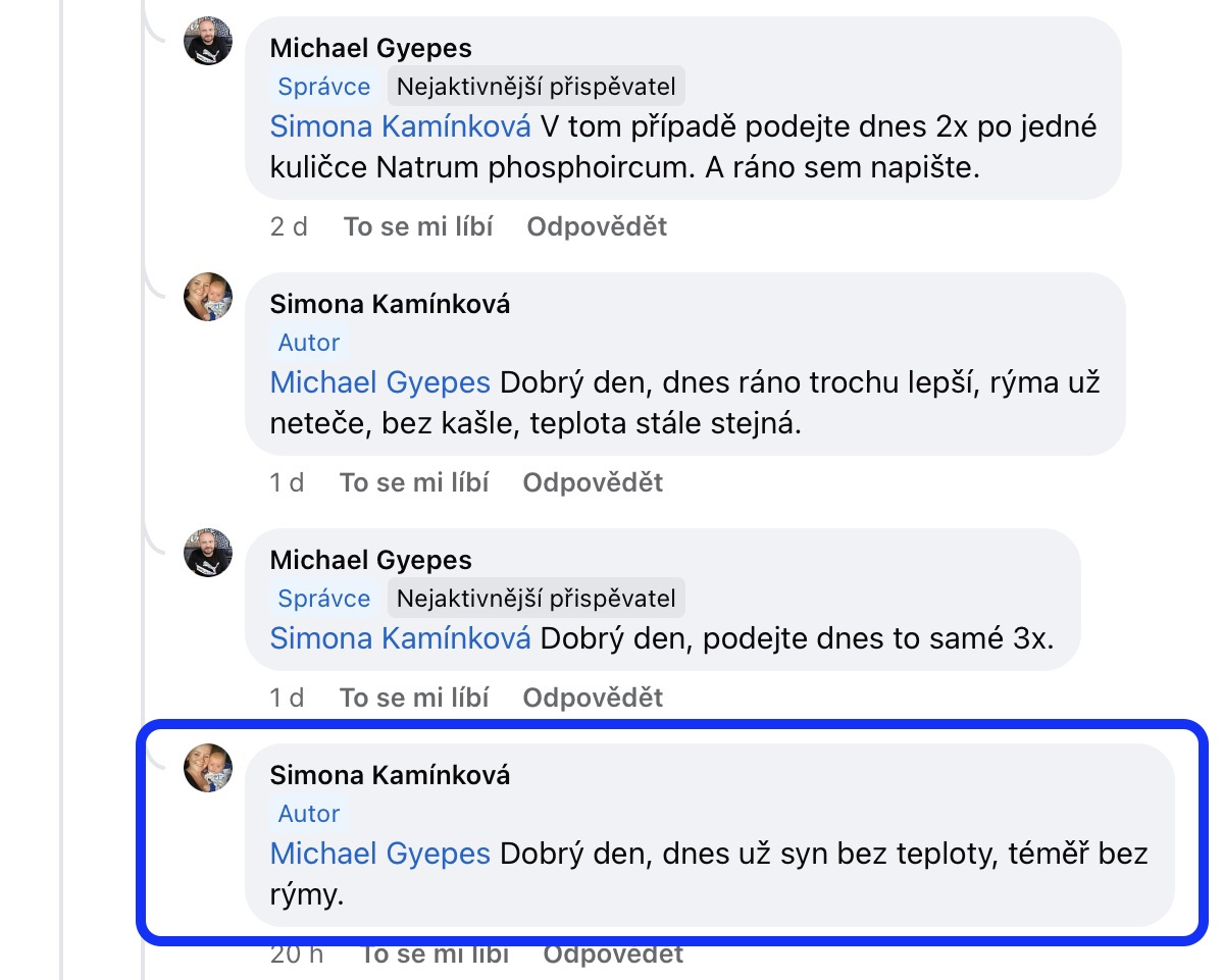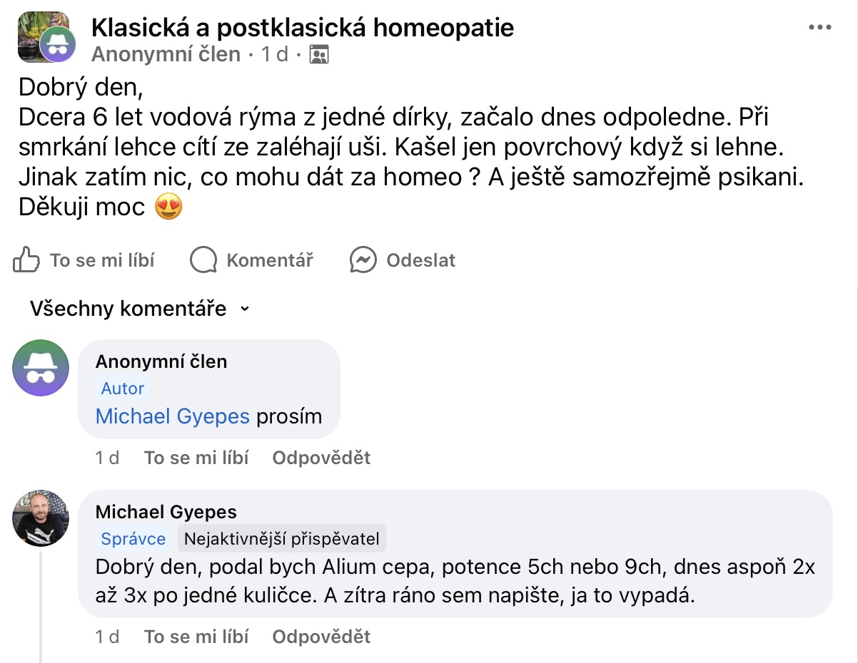 Recenze na Facebooku ve skupině Klasická a postklasická homeopatie.