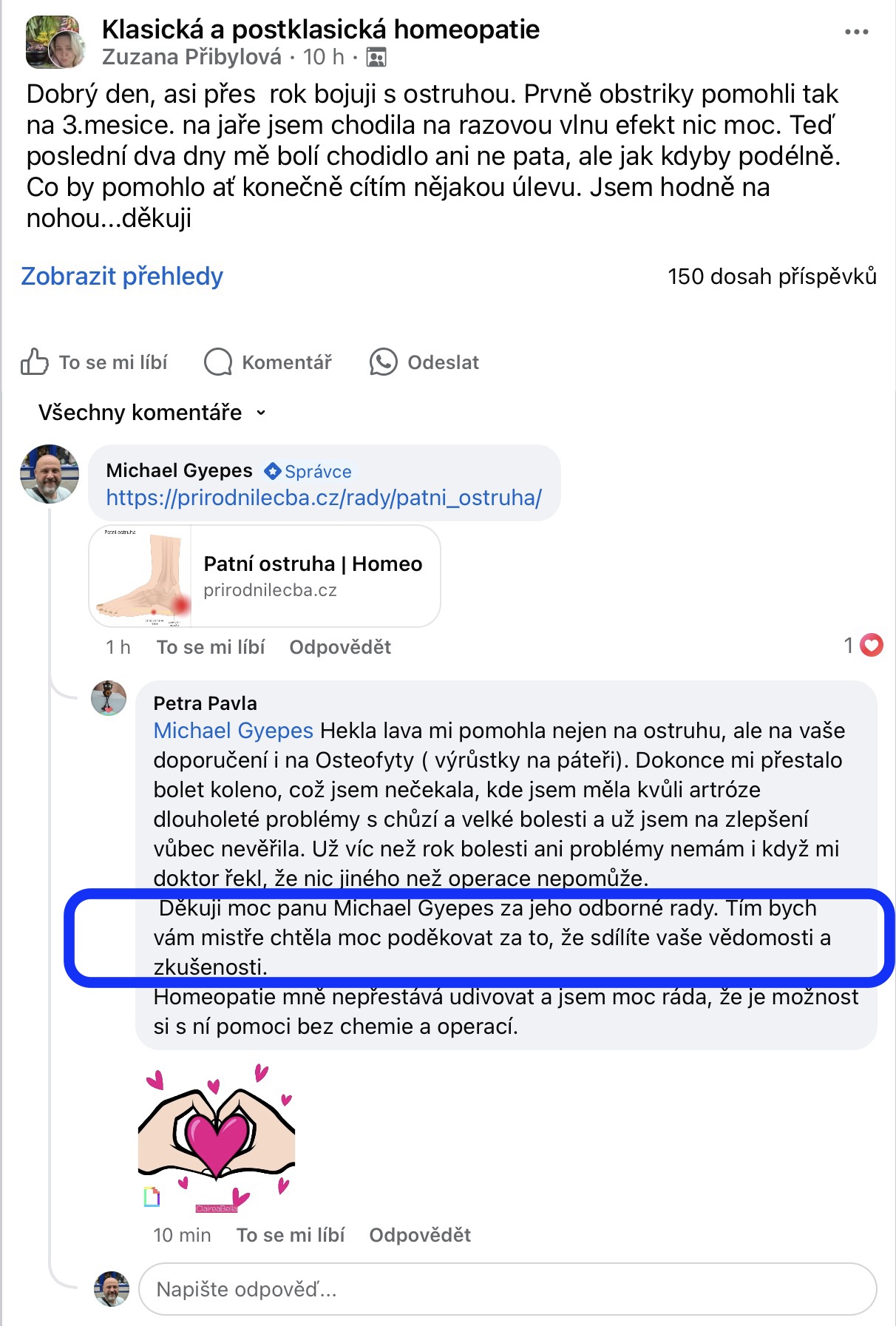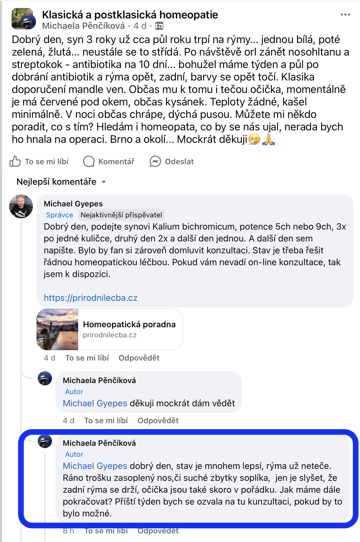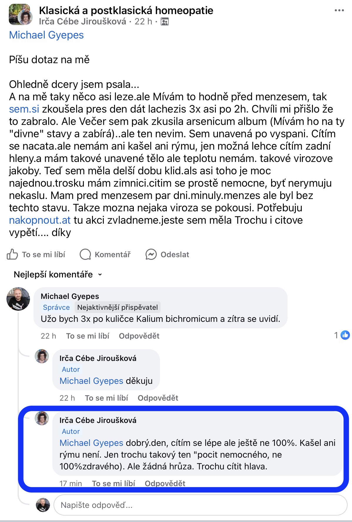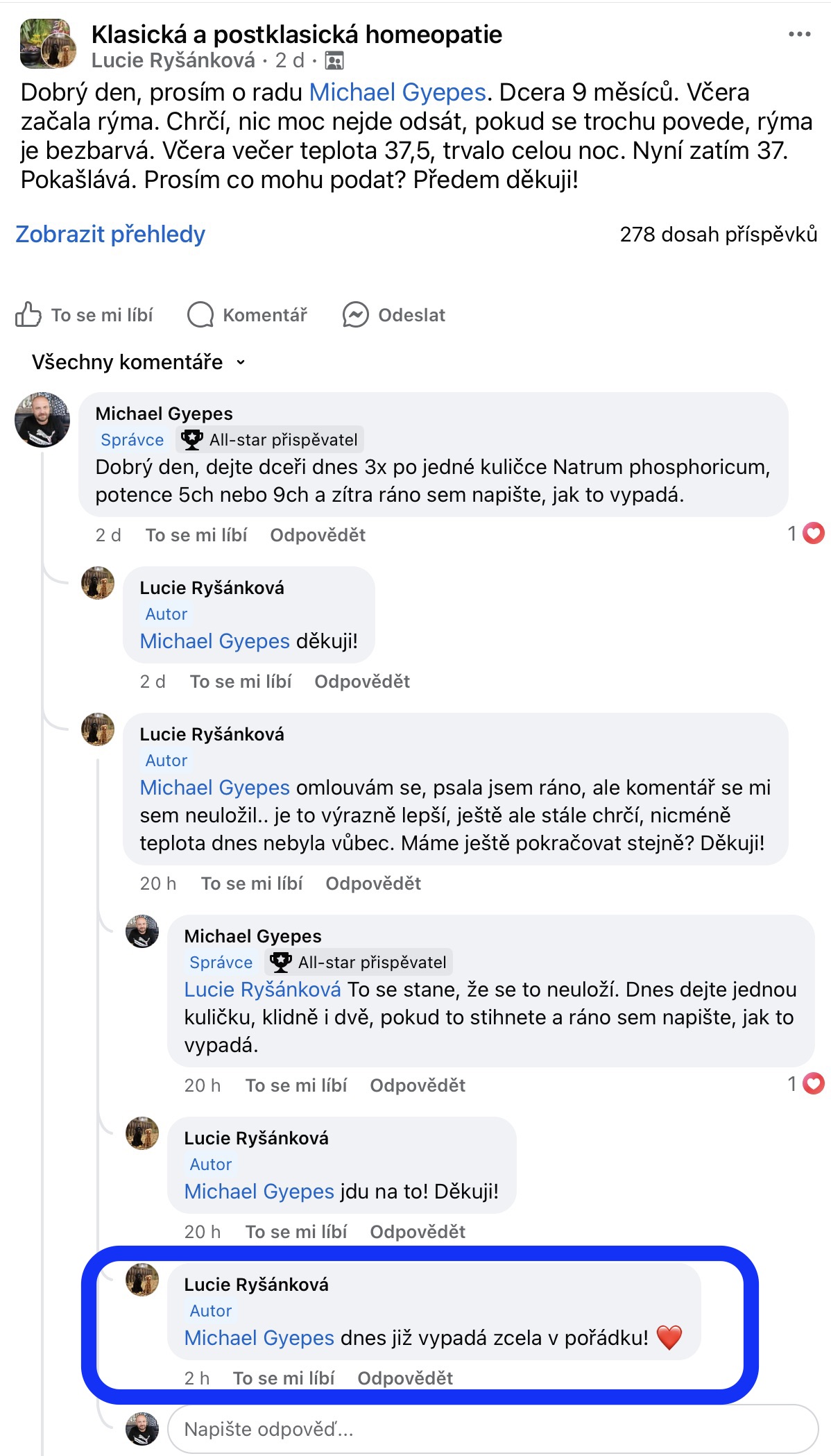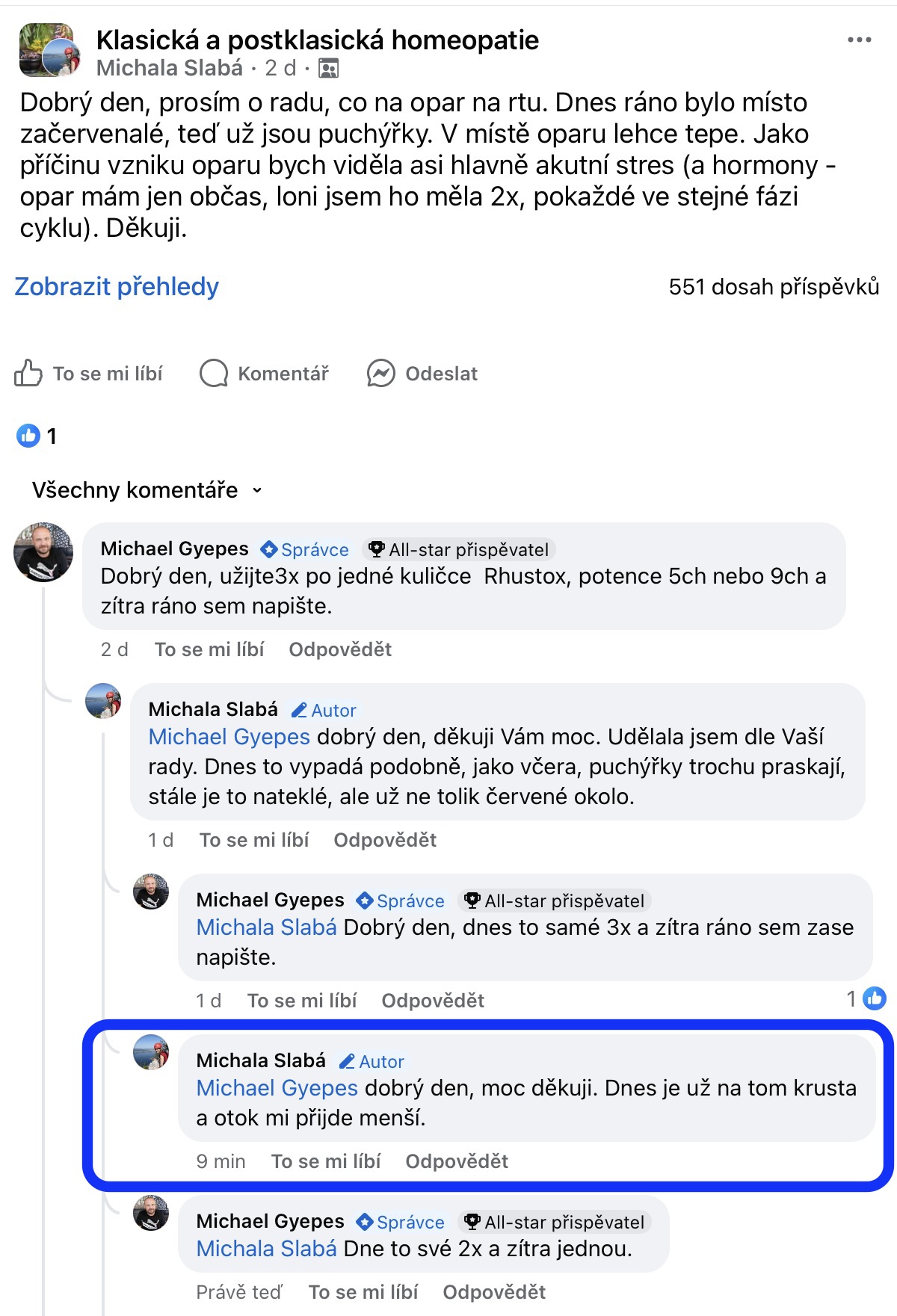 Recenze na Facebooku ve skupině Klasická a postklasická homeopatie.