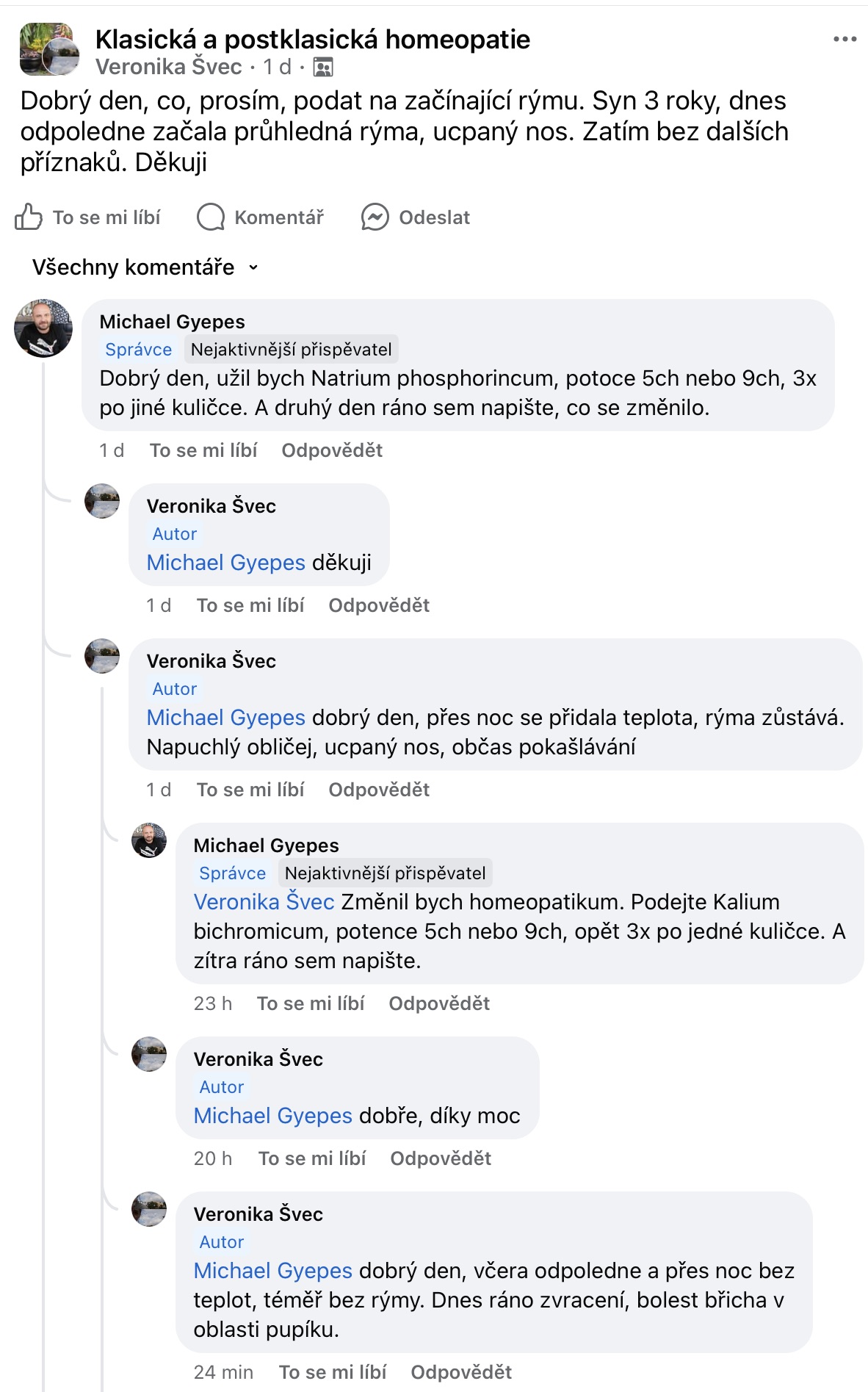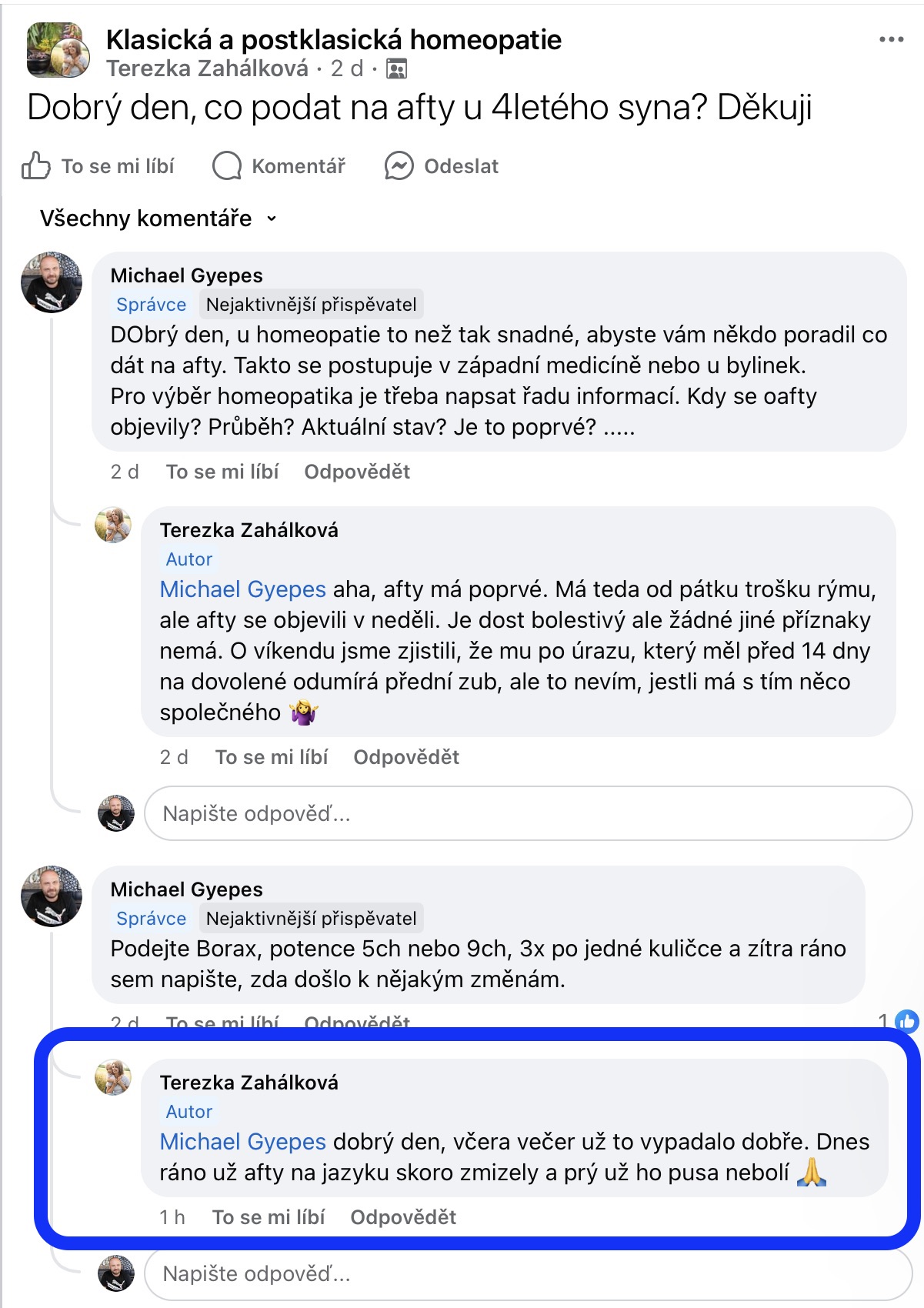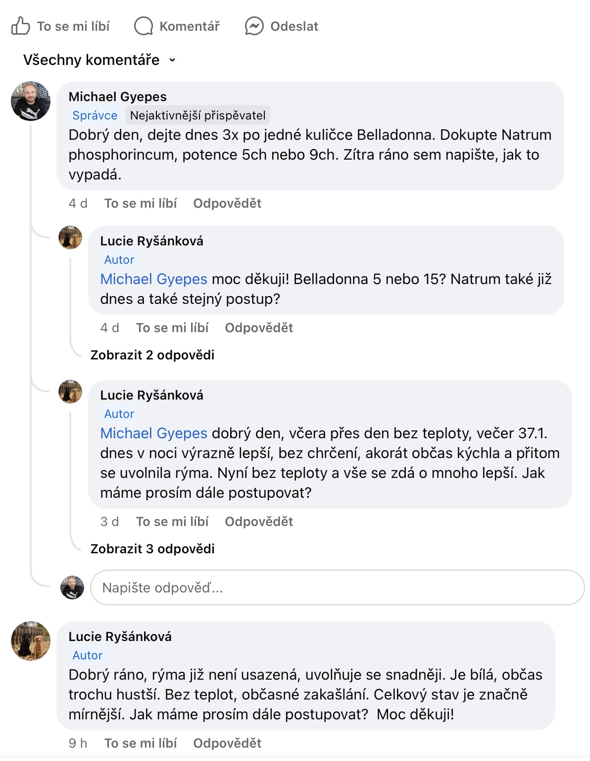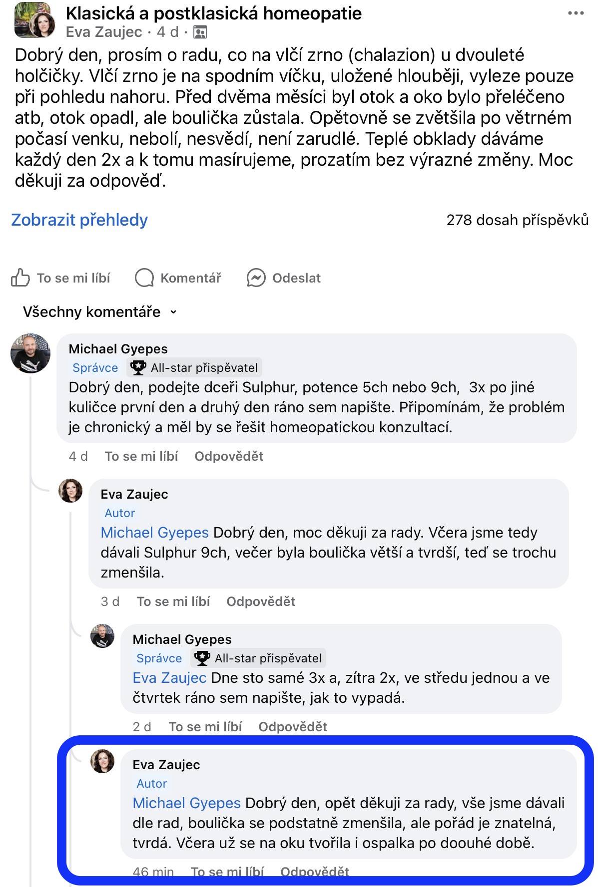 Recenze na Facebooku ve skupině Klasická a postklasická homeopatie.