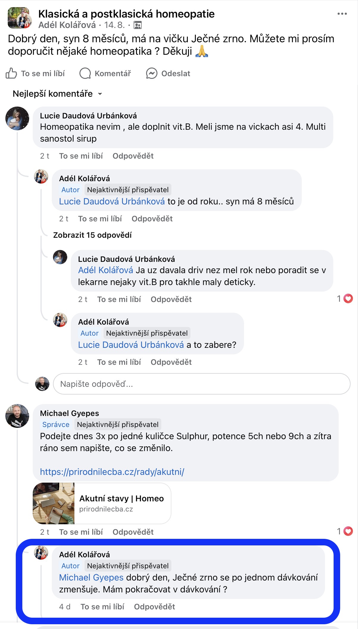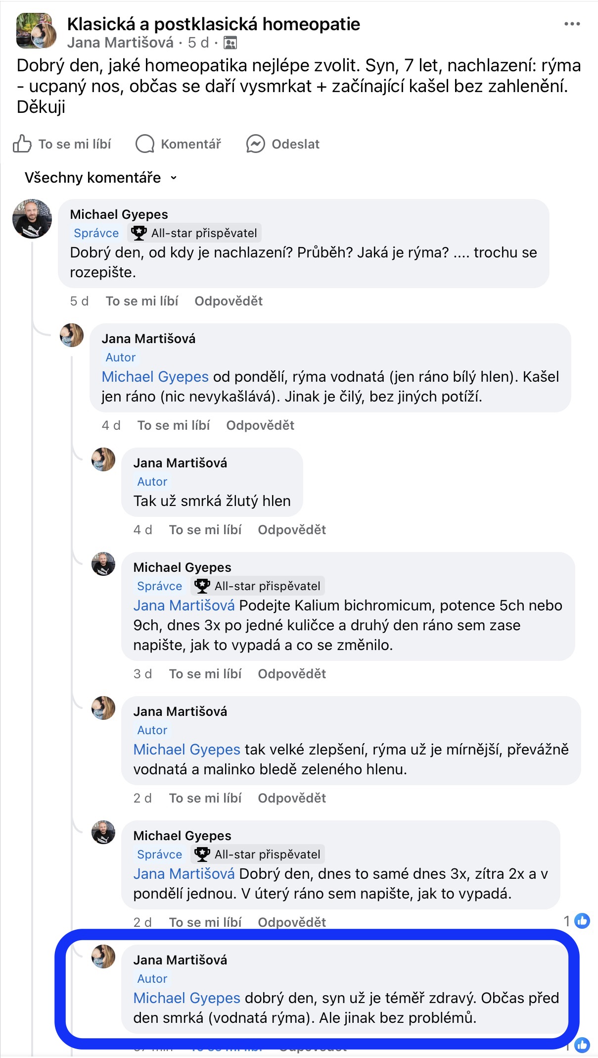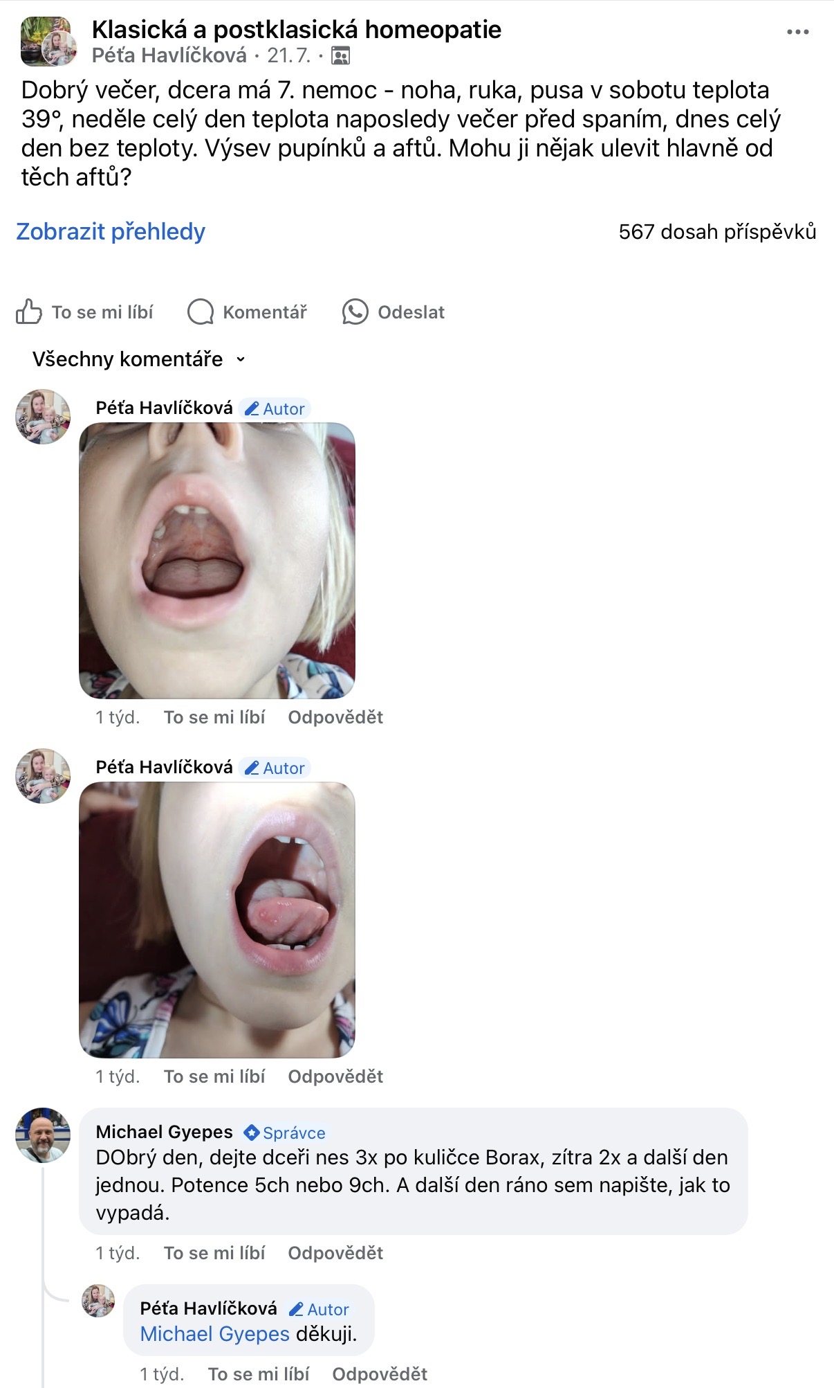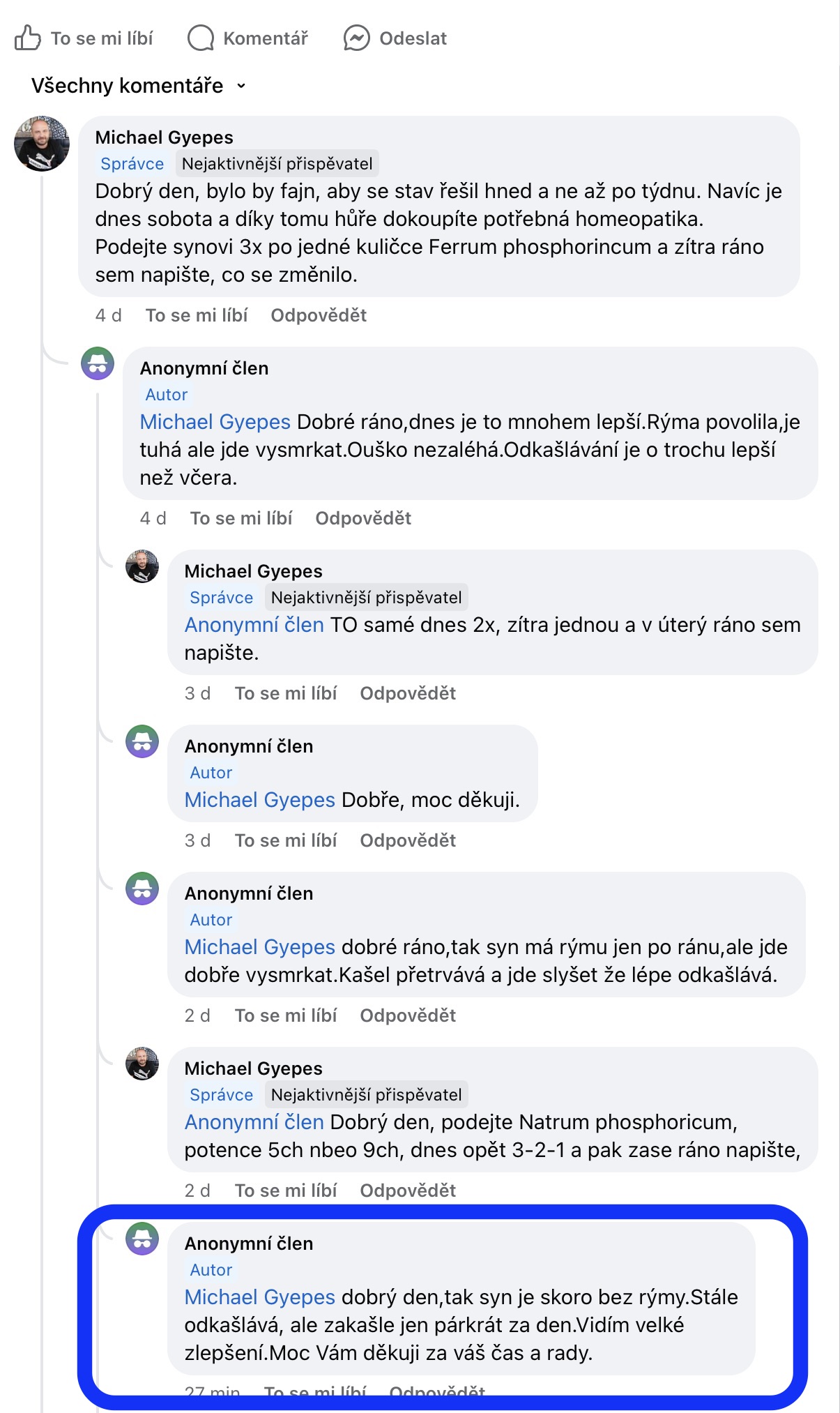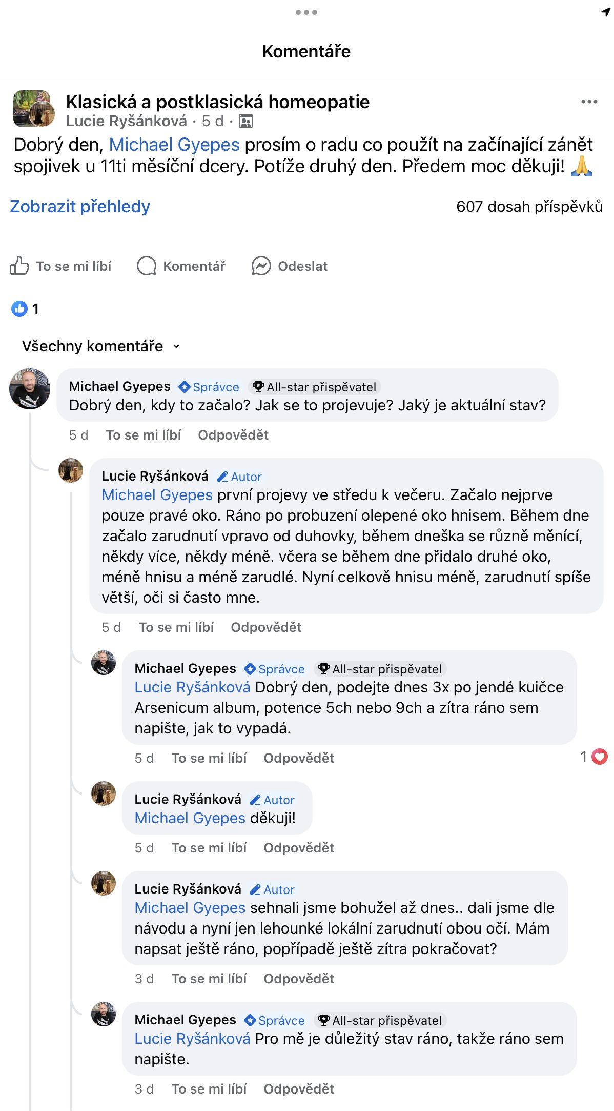 Recenze na Facebooku ve skupině Klasická a postklasická homeopatie.
