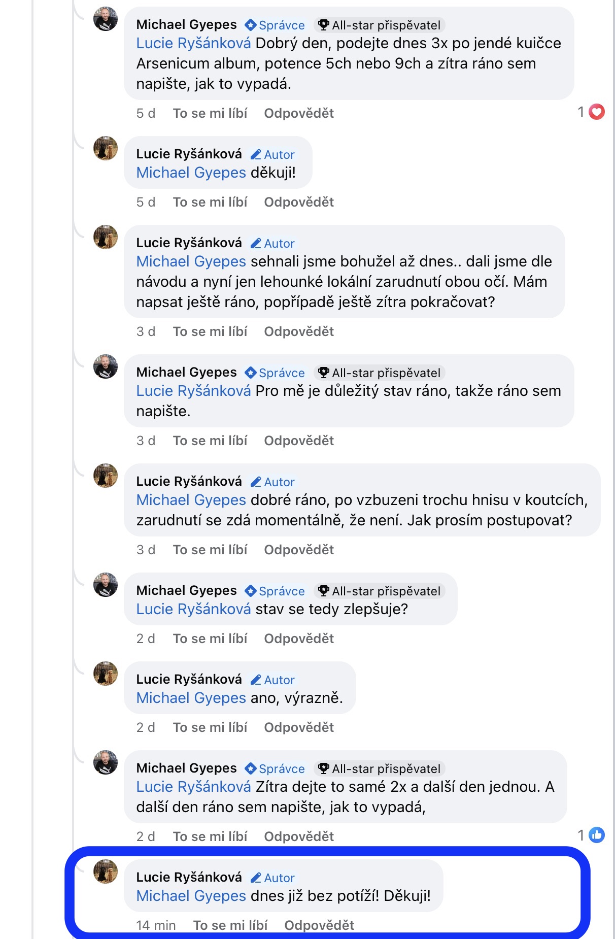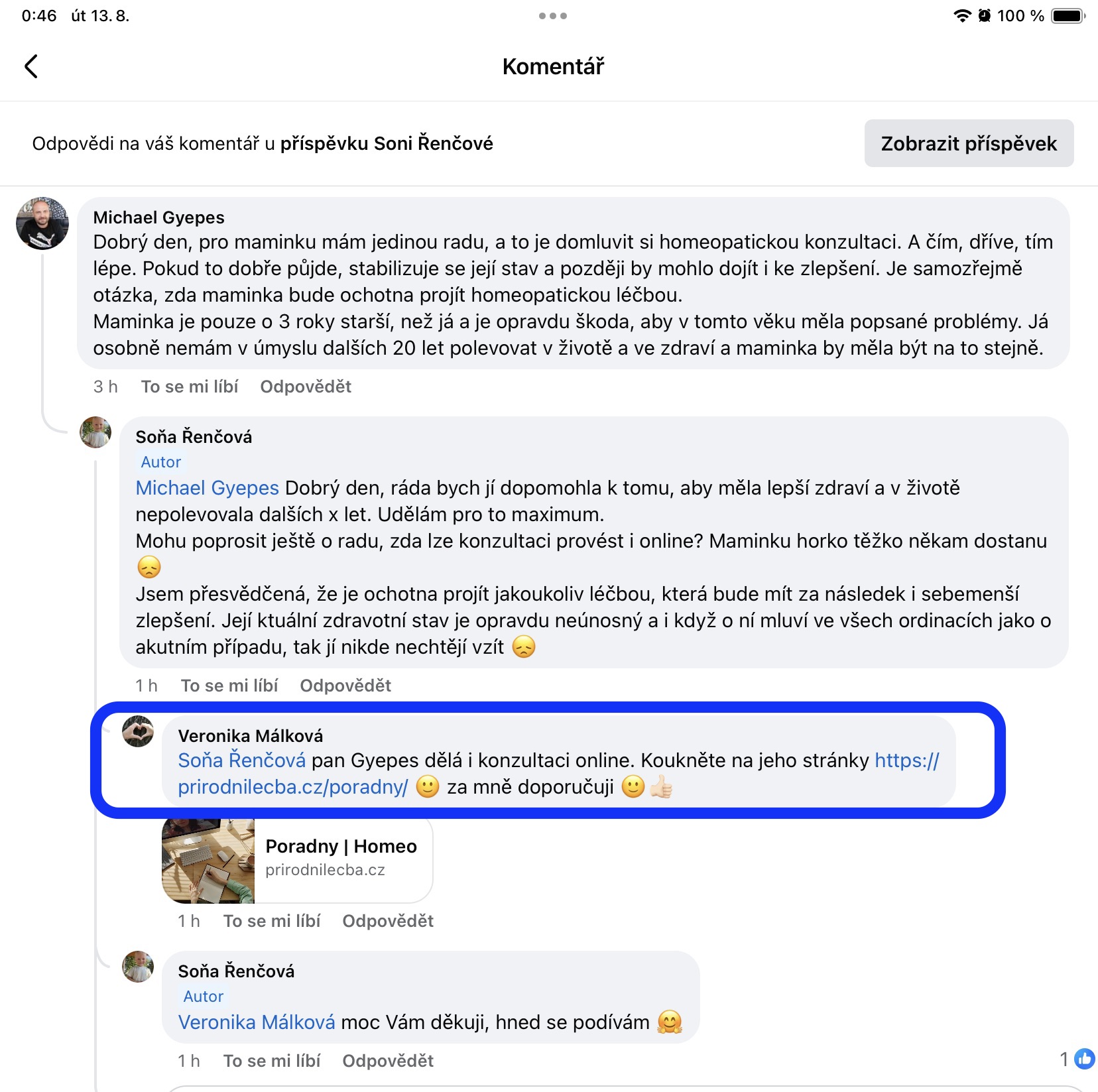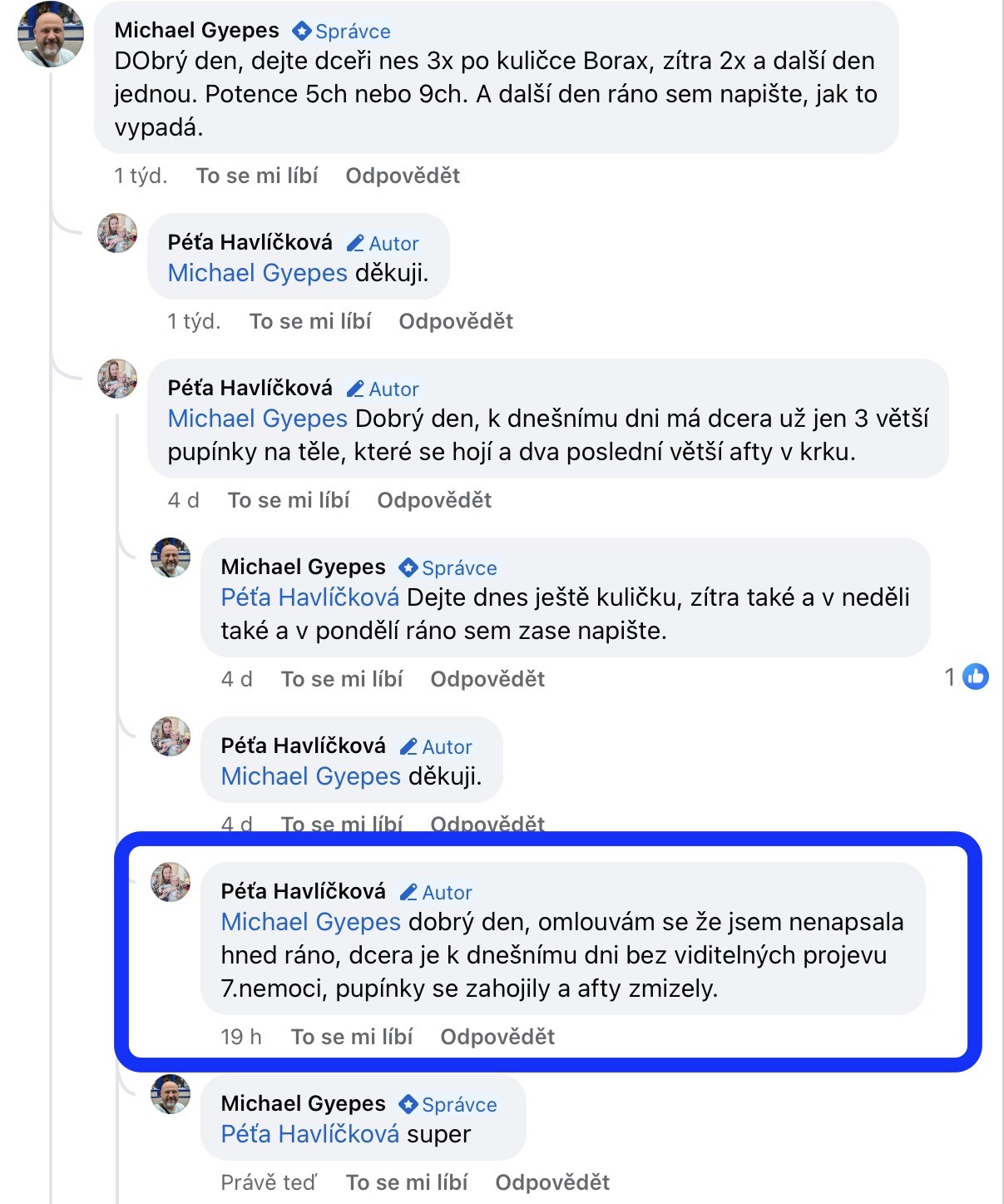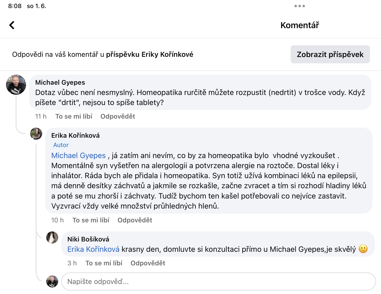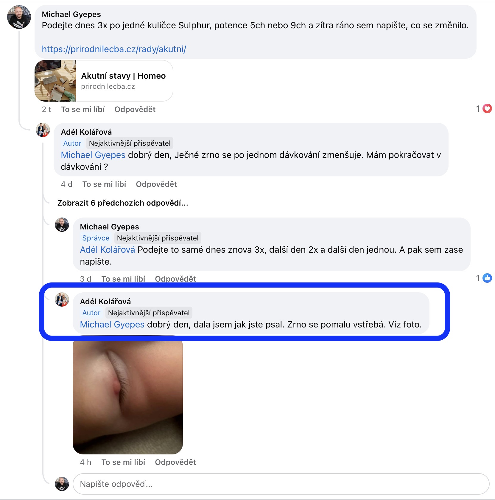 Recenze na Facebooku ve skupině Klasická a postklasická homeopatie.